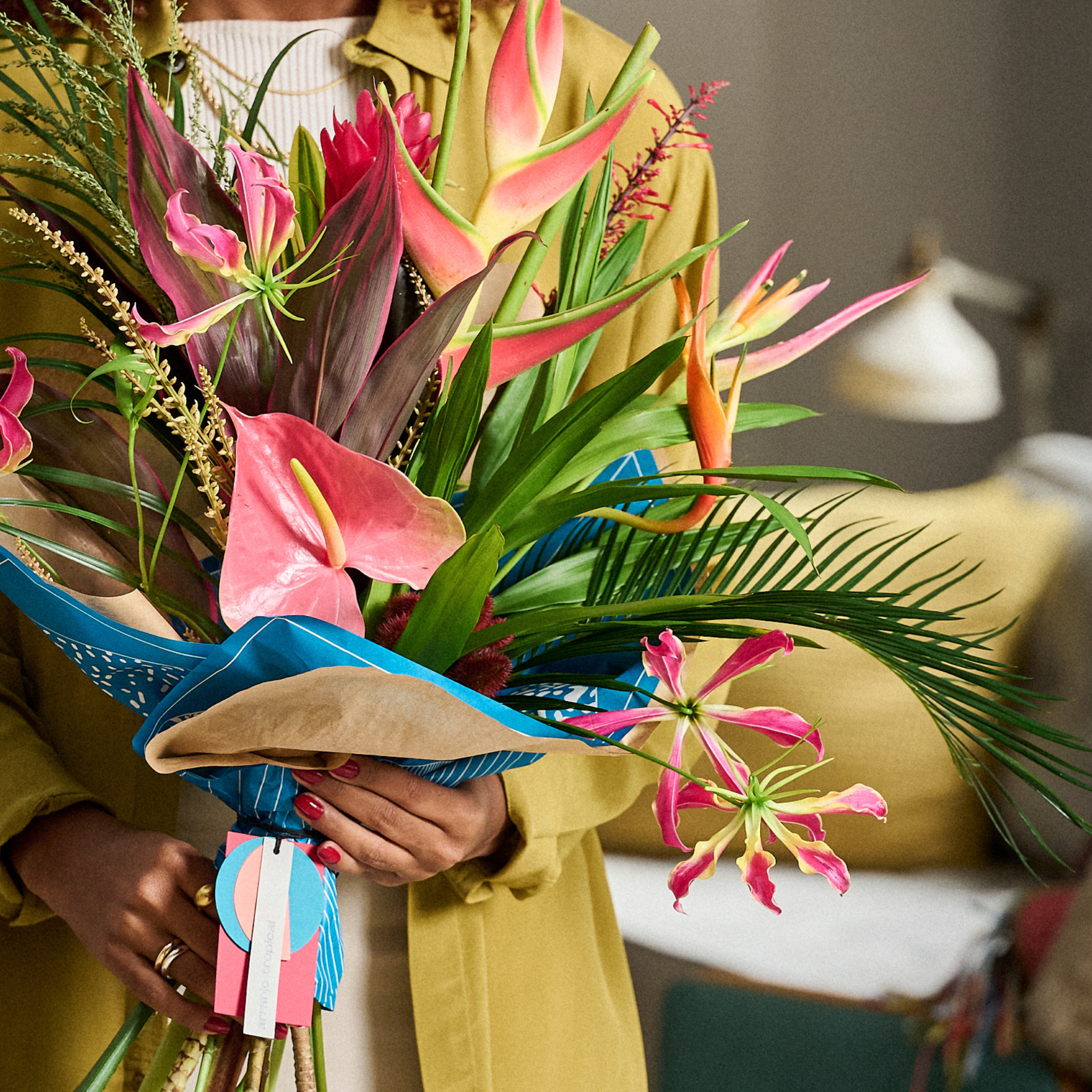 Renda-se à brasilidade com o nosso buquê de flores tropicais médio — um dos Best-Sellers da Arranjo Tropical. Com cerca de 18 hastes selecionadas a dedo, esse buquê médio com flores tropicais celebra a exuberância da natureza de forma artística e vibrante.